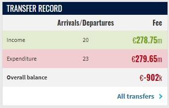 若计算上杰克逊租借离队的1500万欧收入,蓝军今夏的收入将接近3亿欧,超过了他们在引援上的支出。